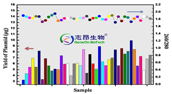 本试剂盒基于经典碱裂解法和磁性微纳米复合粒子的核酸提取技术,实现高纯度质粒 DNA的提取和纯化。所提取的质粒DNA可用于各种分子生物学